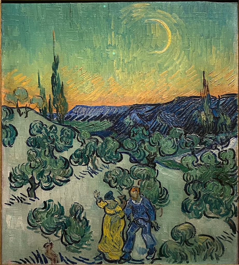 Más tarde, en Nueva York, llegó el deleite bajo la forma de “los cipreses de Van Gogh”, maravillosa exposición que calmó por un rato mi sempiterna avidez de fauvismo, aunque me dejen indiferente las aberrantes exageraciones de su popularidad. Ya durante mi infancia observaba, a menudo embobado, los cipreses cimbreándose en el olivar. Es cierto que en Andalucía, obedeciendo legendarios ecos de la mitología griega, los cipreses se suelen plantar en los cementerios, pero no solamente. Una versión más pagana aún los sitúa también en torno a las albercas enjalbegadas, donde su silueta oscura corona el blanco de cal junto al agua fresca. Muy pequeño aún descubrí que cuando el viento los agita se mueven de una forma especialmente sensual y libidinosa ¡Cuántas veces no habré quedado extasiado mirando cómo, de su seno sinuoso irradiaba un erotismo hipnótico y delirante…! Uno deduce que esto deberían saberlo sus estudiosos y entusiastas, y, más concretamente, los responsables de la exposición del Met, pues podría estar relacionado con la obsesión de Van Gogh con este árbol. Habría bastado una película en una pequeña pantalla lateral; una referencia a la vida real de los cipreses. Pero no. Jamás he leído una sola mención a esta cualidad singular del árbol de Apolo, y tampoco me parece tan difícil intuirla. Los cipreses se mueven como tiernos cuerpos, provocativos, llenos de ignoto deseo: esa imagen del ciprés la atesoraba yo mucho antes de disfrutar del trágico fauve y sus pinceladas breves, entrecortadas, ondulantes, gruesas; me importaba poco que los cipreses estuvieran bajo la luz de la luna, pero si los agitaba el viento eran otra cosa: parecen cuerpos vivos, de temblorosa carne, semejantes a la onda breve, encerrada, del agua de las albercas en el olivar.