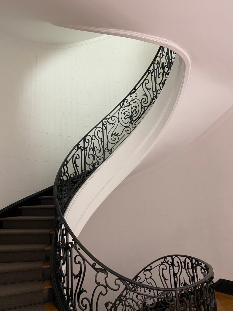 That of parergon/ergon is an old, appealing discussion in Art History. Kant, Hegel, Lebensztejn or Derrida to name only a few, come to my mind. What happens when parergon -the frame- becomes as important as ergon, the work? What if it becomes independent from the artwork? Or when the frame rises to its own stardom? Last Friday, a friend who deals in art took me to David Zwirner’s sumptuously austere gallery in the Upper East, which happens to be now the container -an utmost frame-, of an exhibition on abstraction. Anything can be a good reason to exhibit, and this time it is the turn of «Pure Form», formal qualities of abstraction. Only in part, true, we had seen this in Russia much earlier, at the beginning of the century. The works made a perfect choice to enjoy: Kusama, Tillmans, Flavin, Albers…Anni Albers’ drawing, ink on paper (37,2 cm x 29,8 cm), carelessly hung by the office quarters, costs 400.000$… But, what really caught my attention was the clean-cut spiral of the staircase in the building containing the gallery and the artworks. «Free beauty», I thought. As Kant would have put it, pulchritudo vaga, beyond the status of the exhibits.