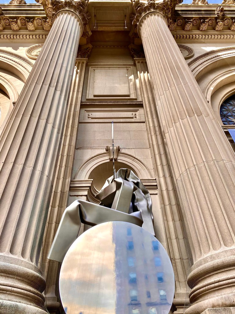 A piece of Carol Bove’s «impolite» installation for the façade of The Met