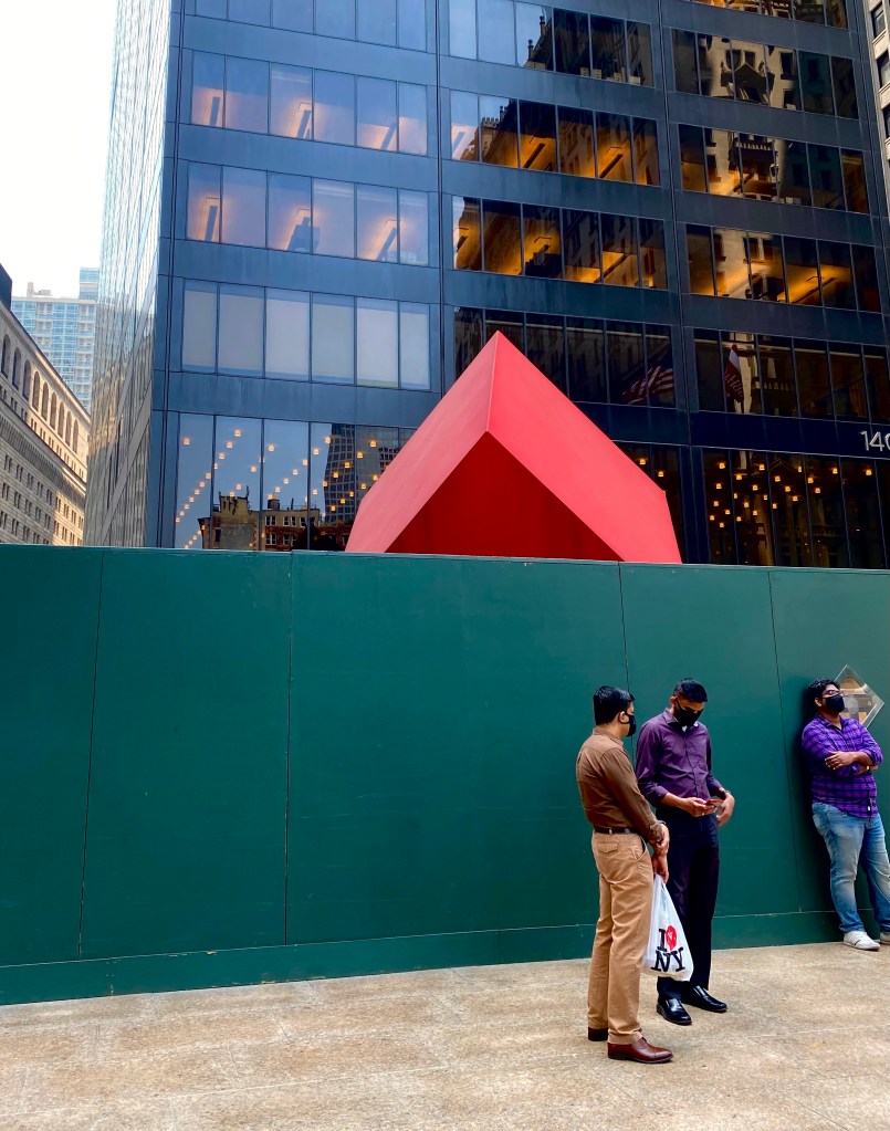 Isamu Noguchi’s cube looks at us. Broadway, Lower Manhattan